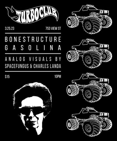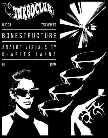 Bonestructure is an ongoing creative collaboration between cole smith and charles landa. Following an audio/ visual EP entitled Gallows released in 2021, the duo has focused their energy towards DJing and launching Turbo Club, an event series featuring speedy glasses, high bpm and analog visuals in Victoria, BC.